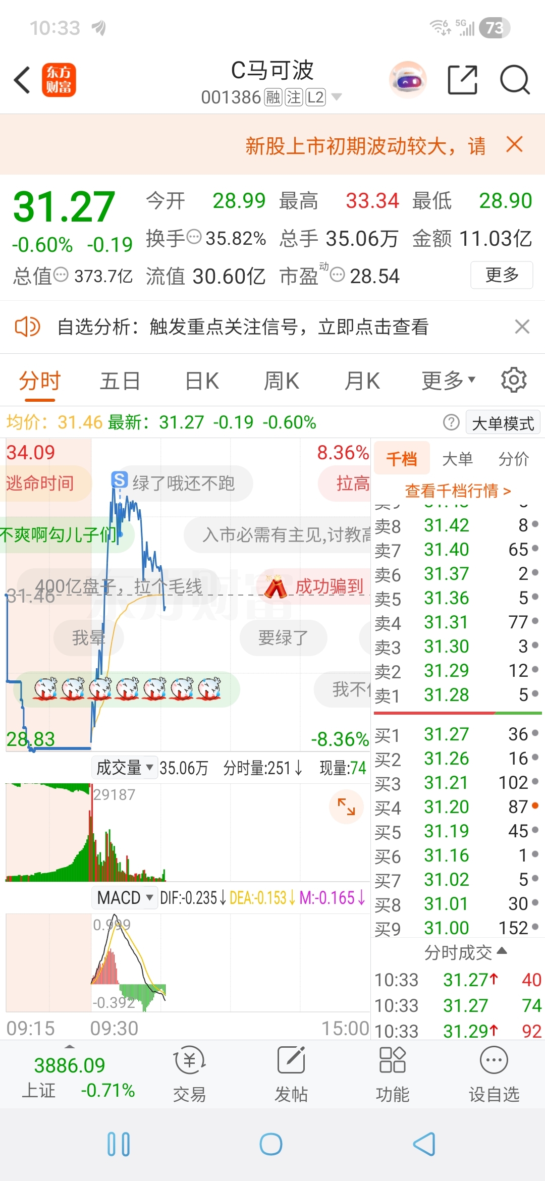 $C马可波(SZ001386)$ 感谢大哥不杀之恩