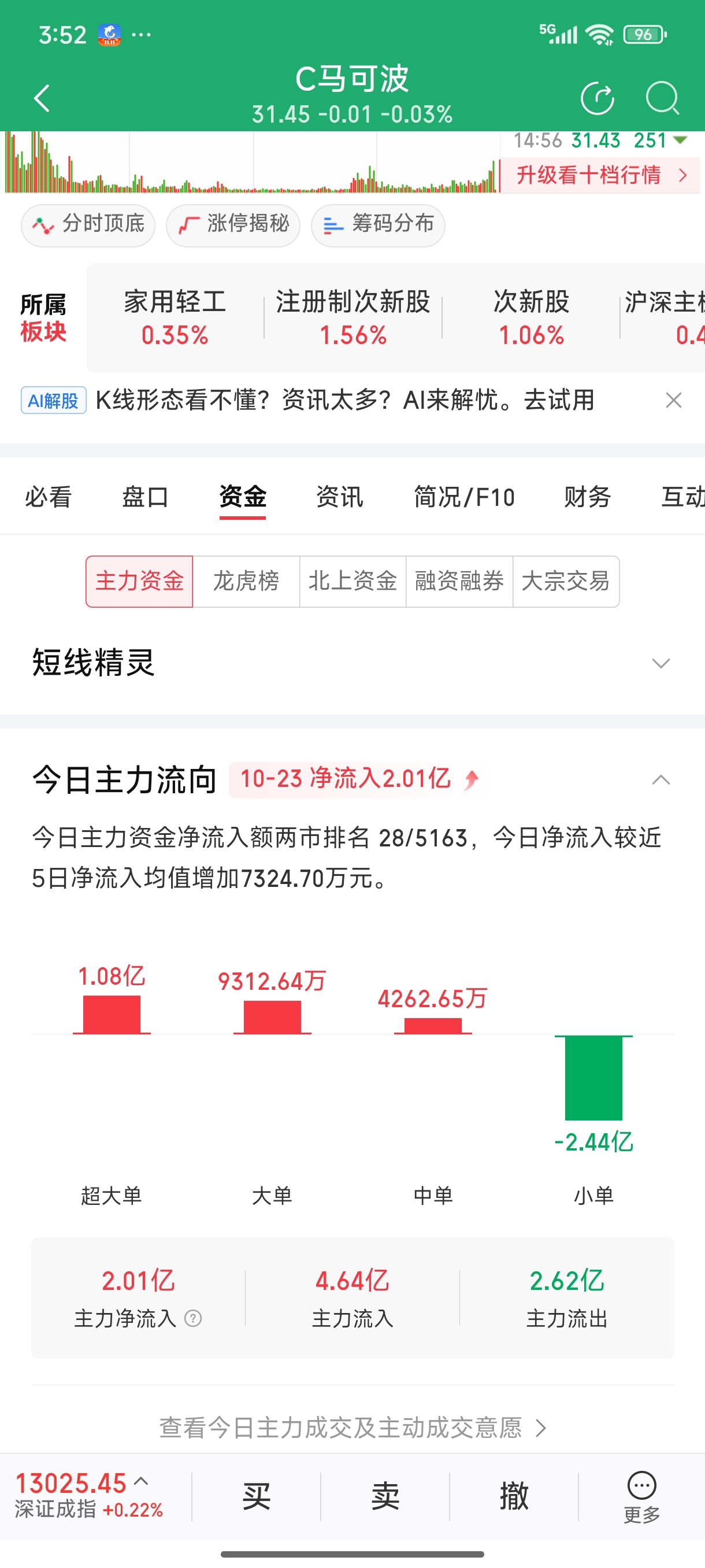 $C马可波(SZ001386)$ 今天流入2个亿,不知道是不是主力