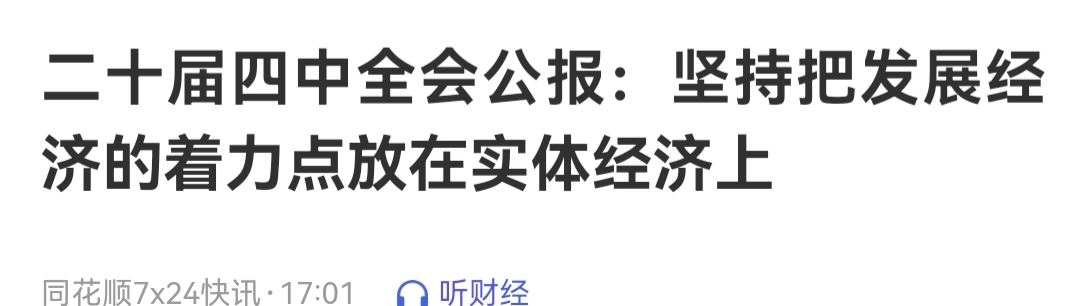 这句话很关键,把着力点放在实体经济上!记住了很关键,会发酵远离网络经济股