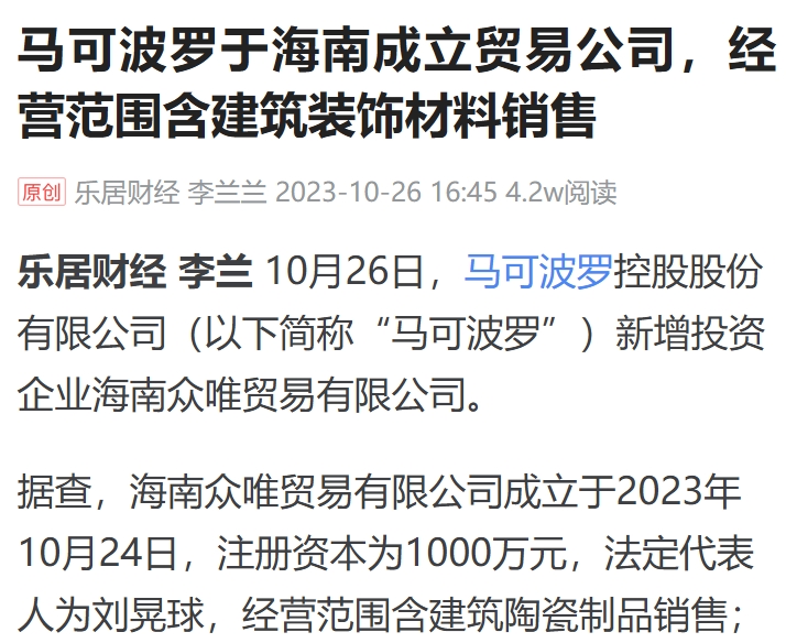 $马可波罗(SZ001386)$ 正宗海南贸易区概念股