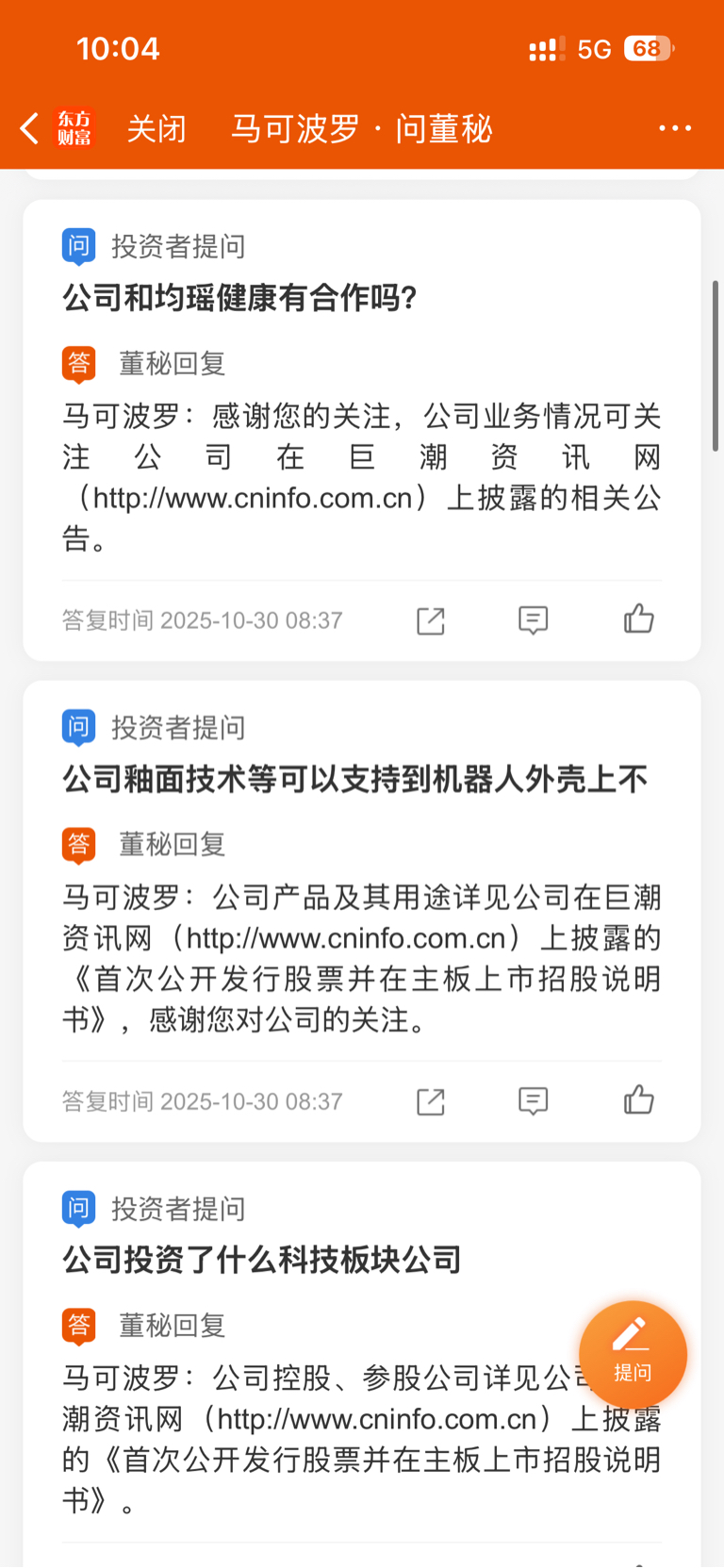 $马可波罗(SZ001386)$ 这董秘说机器人吧