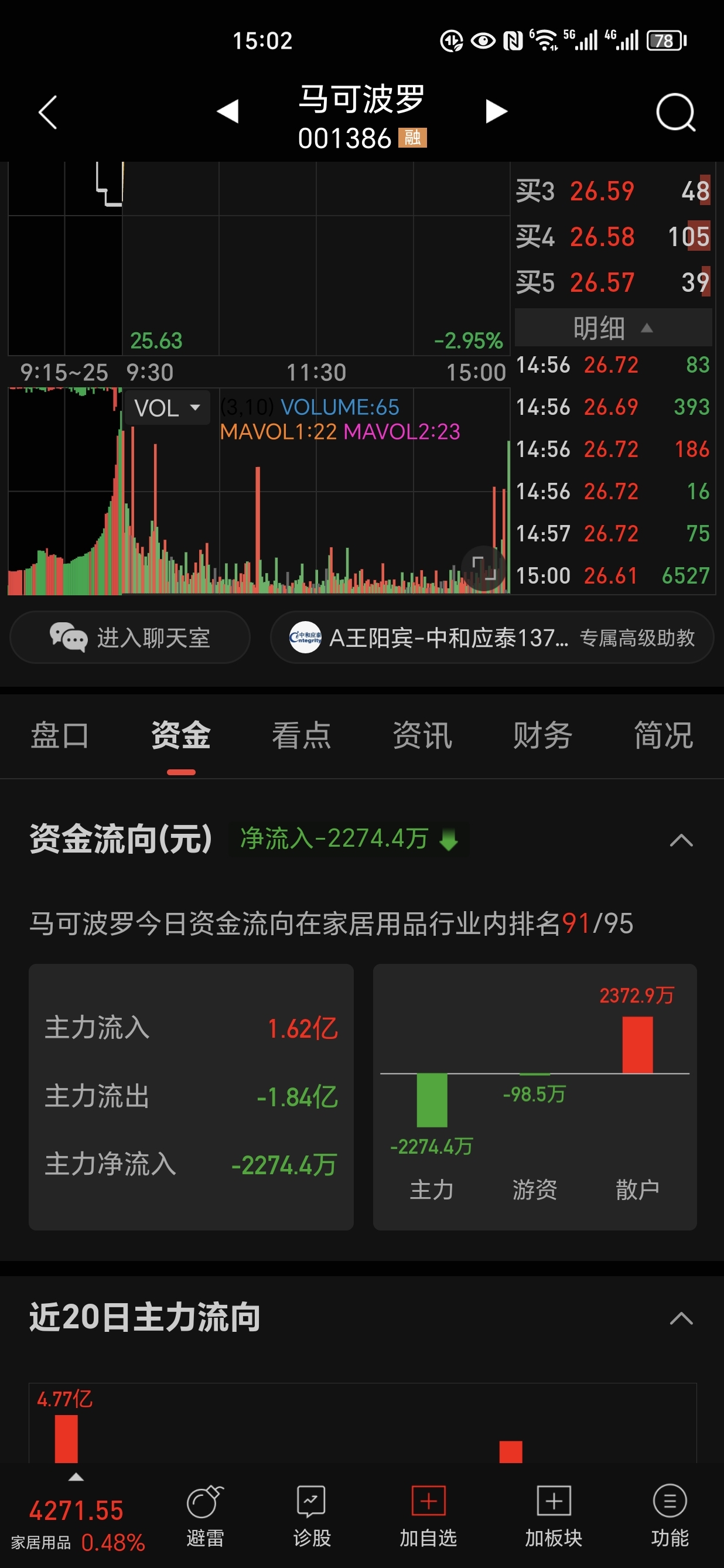 $马可波罗(SZ001386)$ 主力游资在卖,散户在买还红盘收,散户今天还是完胜
