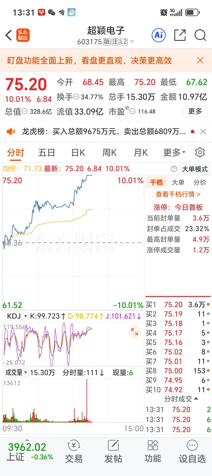 超颖涨停了