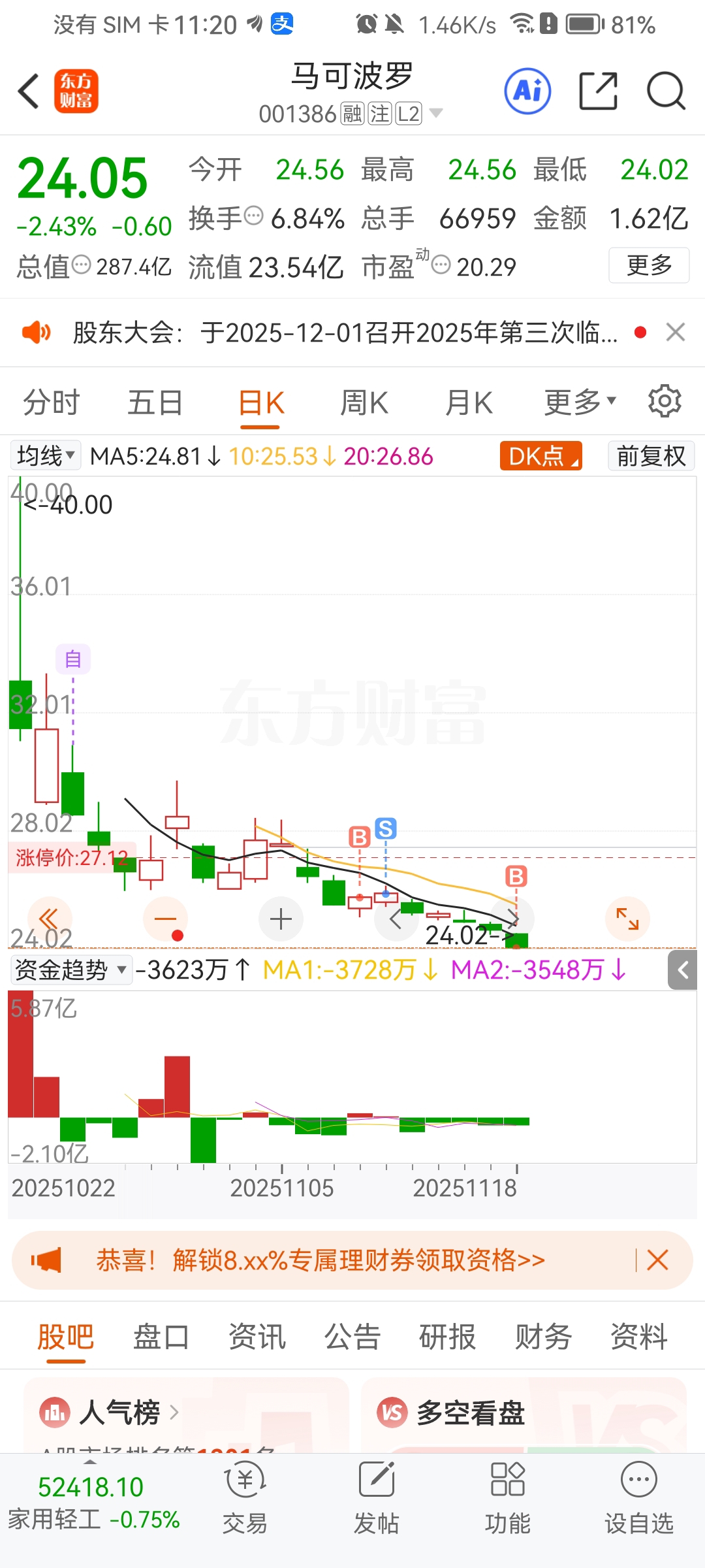 $马可波罗(SZ001386)$ 我进来了,上次赚了一点菜钱,这次再进来,给你们带点好运