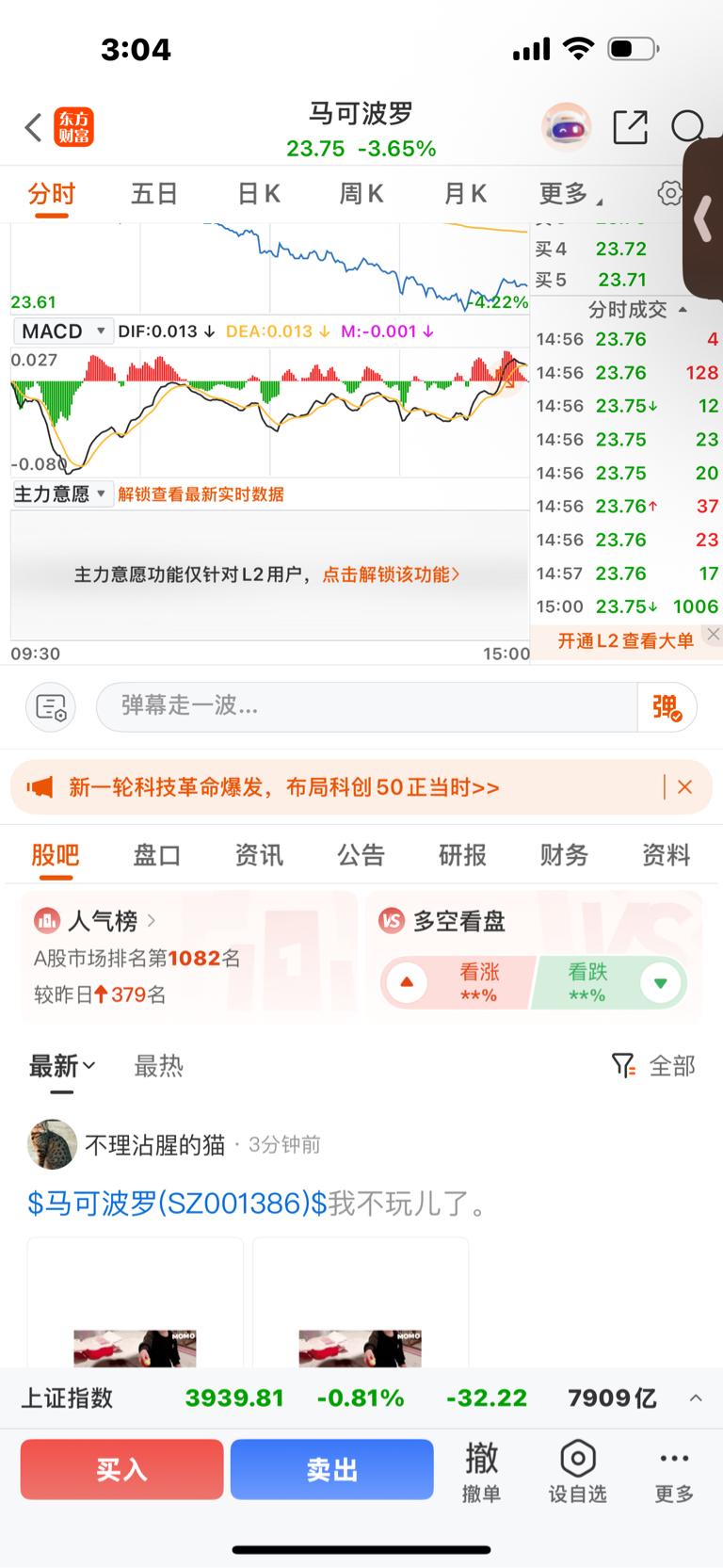 $马可波罗(SZ001386)$ 但凡一只股涨之前人气越来越高,基本完了