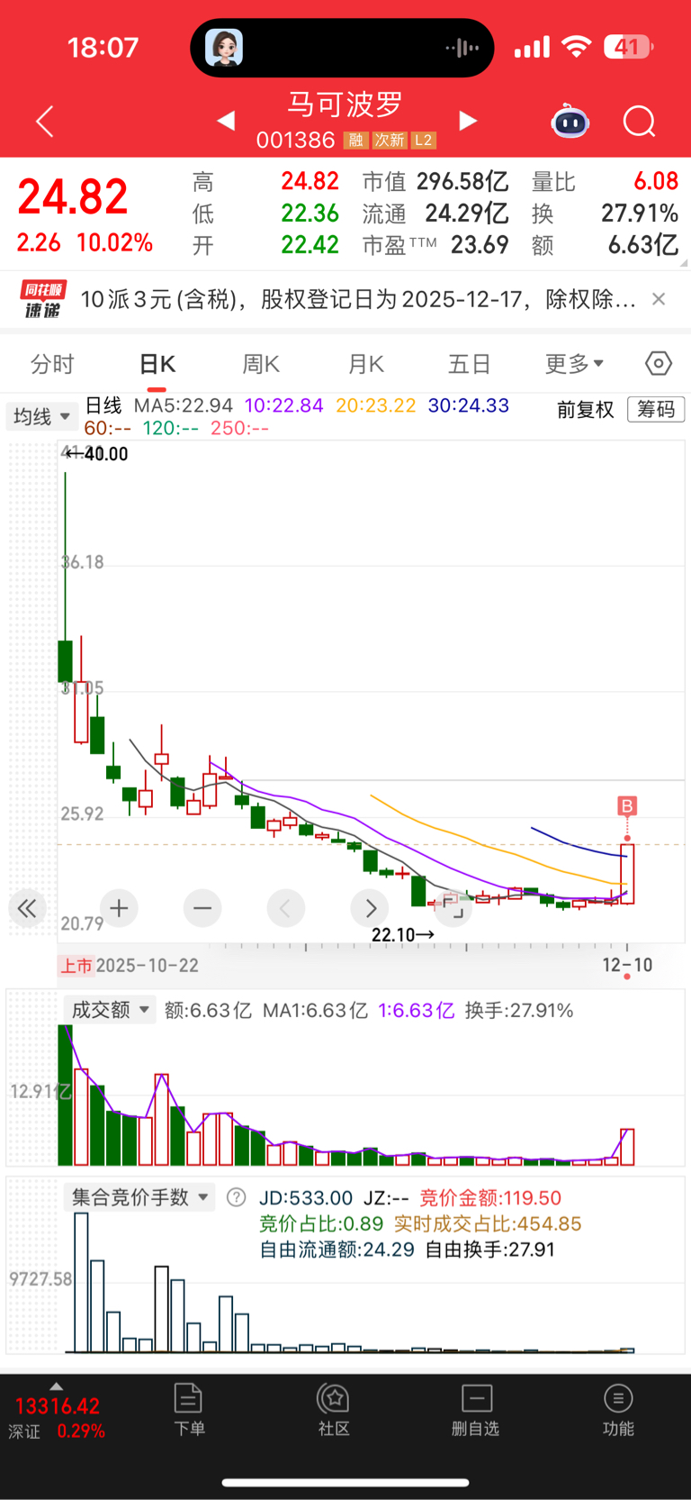 $马可波罗(SZ001386)$ 低位博弈 成了 高溢价 不成小亏 次新叠加马字辈 叠加地产