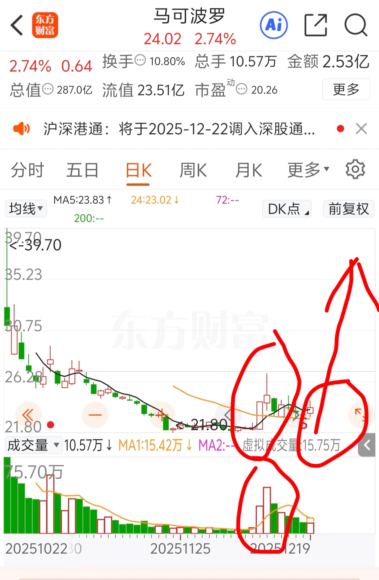 马可波罗,今天涨停,价格25.72,业绩一流,市盈率才20倍,优质个股,上市以来价值回归后,底部明显有资金看中介入,经过七天的缩量调整后,今天开始启动主升浪行情,下周一也就是12月22日,该股可以被深股通介入操作,今天涨停打提前准备!$马可波罗(SZ001386)$
