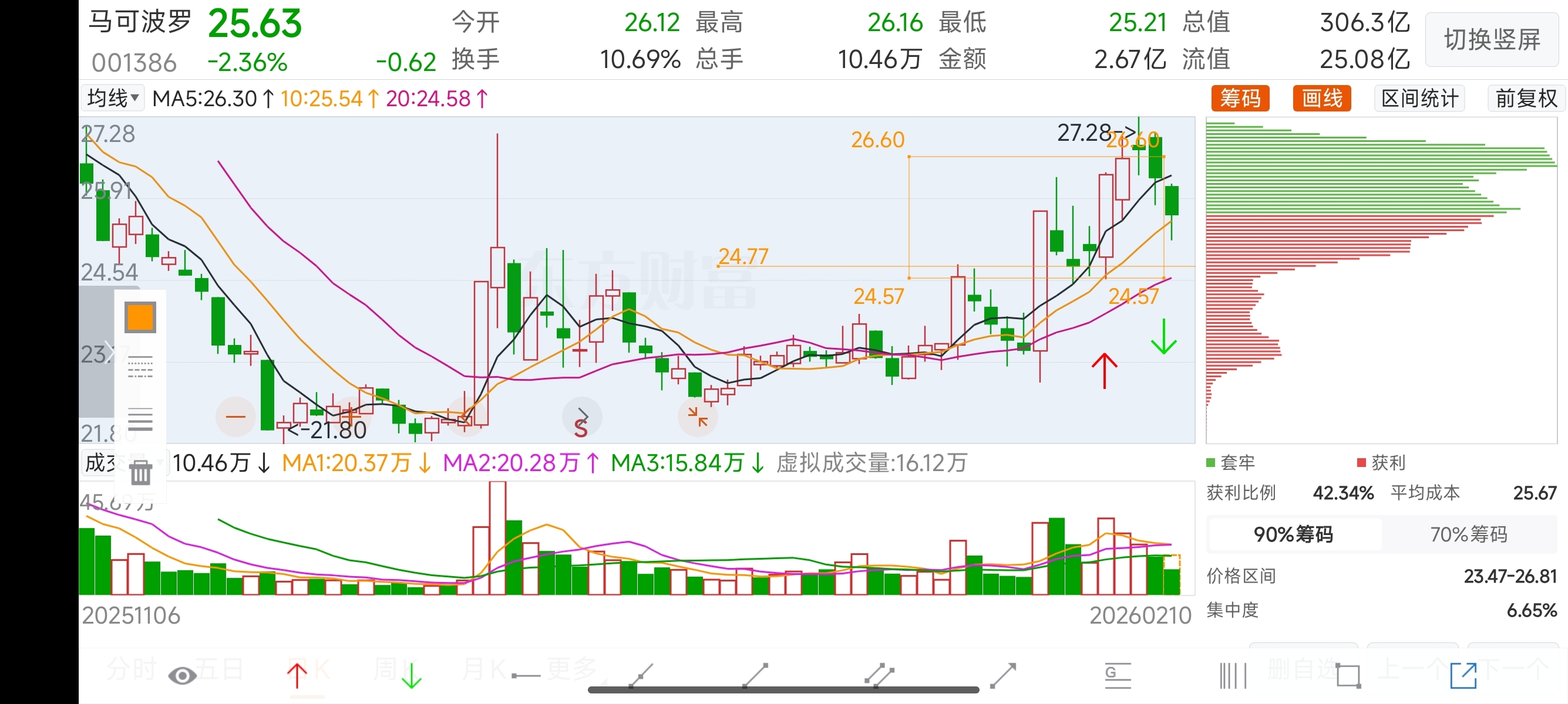 $马可波罗(SZ001386)$ 等24.7位置有强力支撑,先过三阴再说
