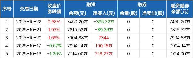 雪祺电气:融资净偿还365.32万元,融资余额7450.2万元(10-22)