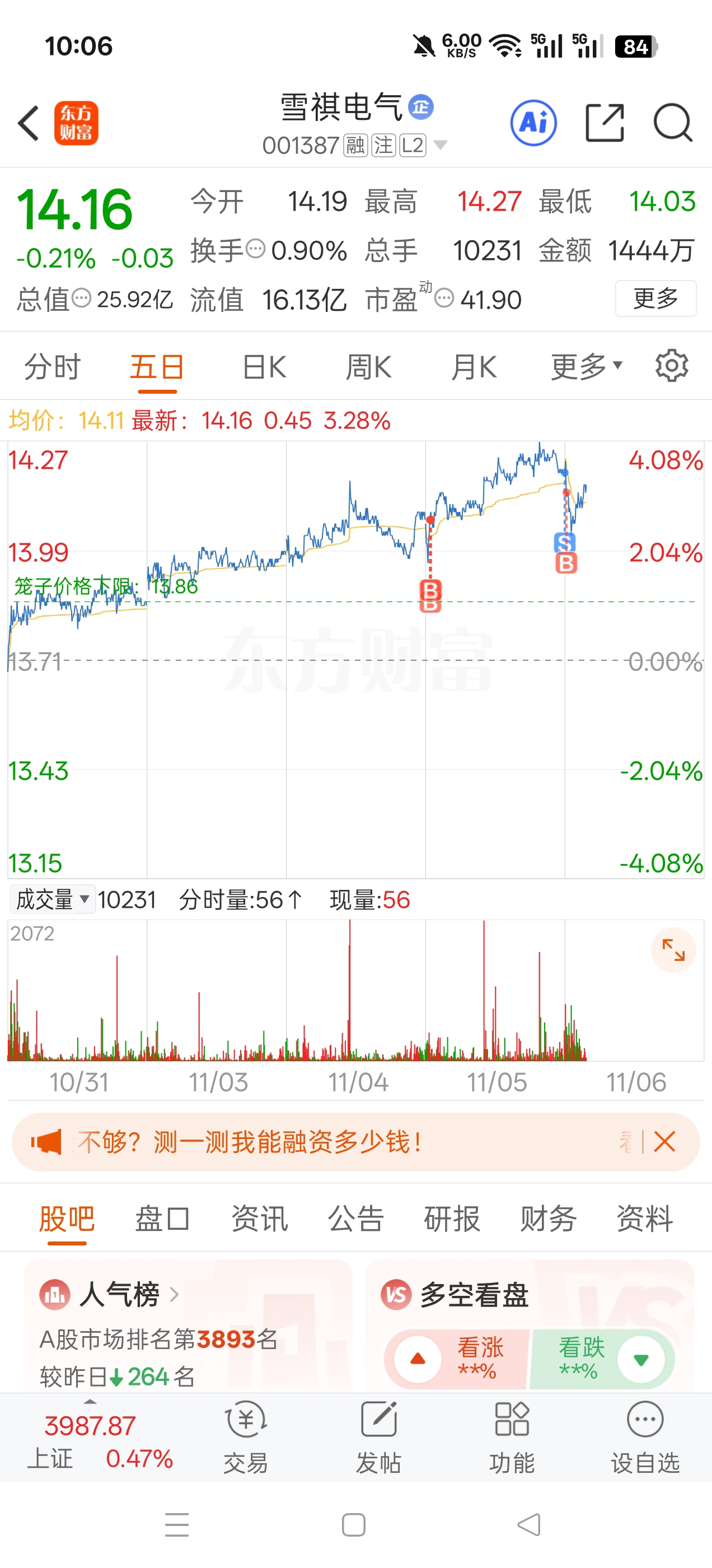 $雪祺电气(SZ001387)$ 第二天小t一点
