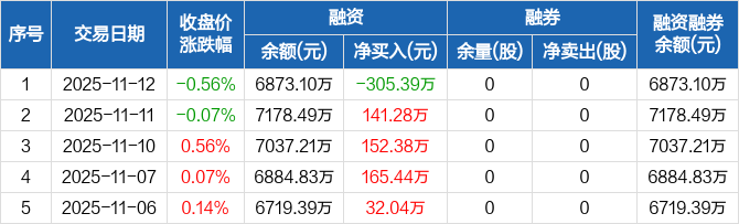 雪祺电气:融资净偿还305.39万元,融资余额6873.1万元(11-12)