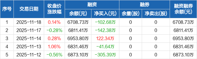 雪祺电气:融资净偿还102.68万元,融资余额6708.73万元(11-18)