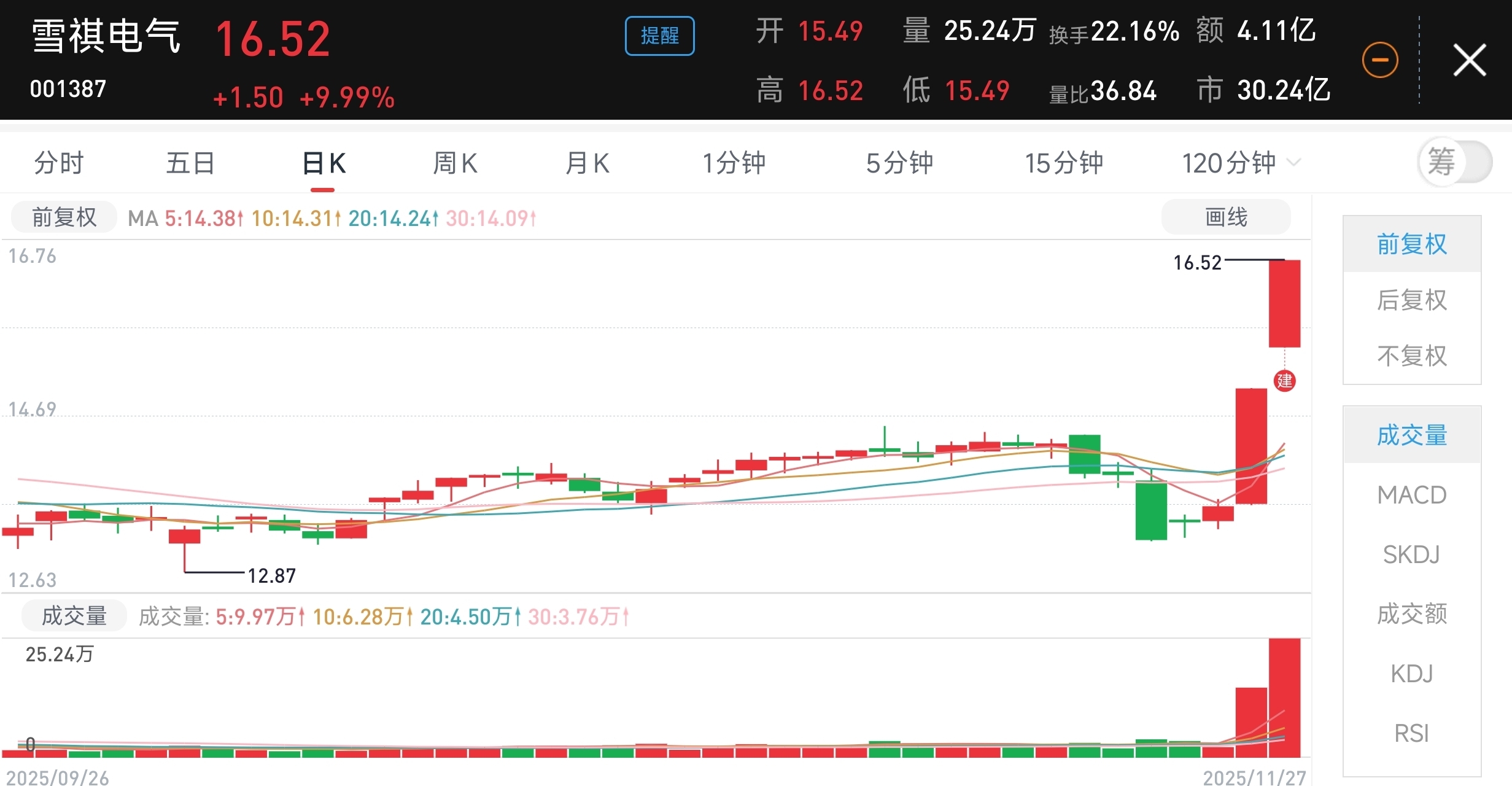 $雪祺电气(SZ001387)$ 确实有三板组嫌疑