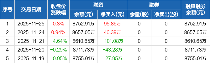 信通电子:融资净买入95.86万元,融资余额8752.91万元(11-25)