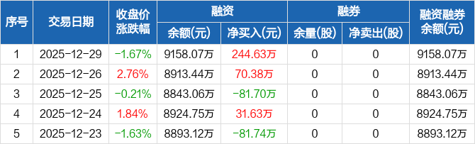 信通电子:融资净买入244.63万元,融资余额9158.07万元(12-29)
