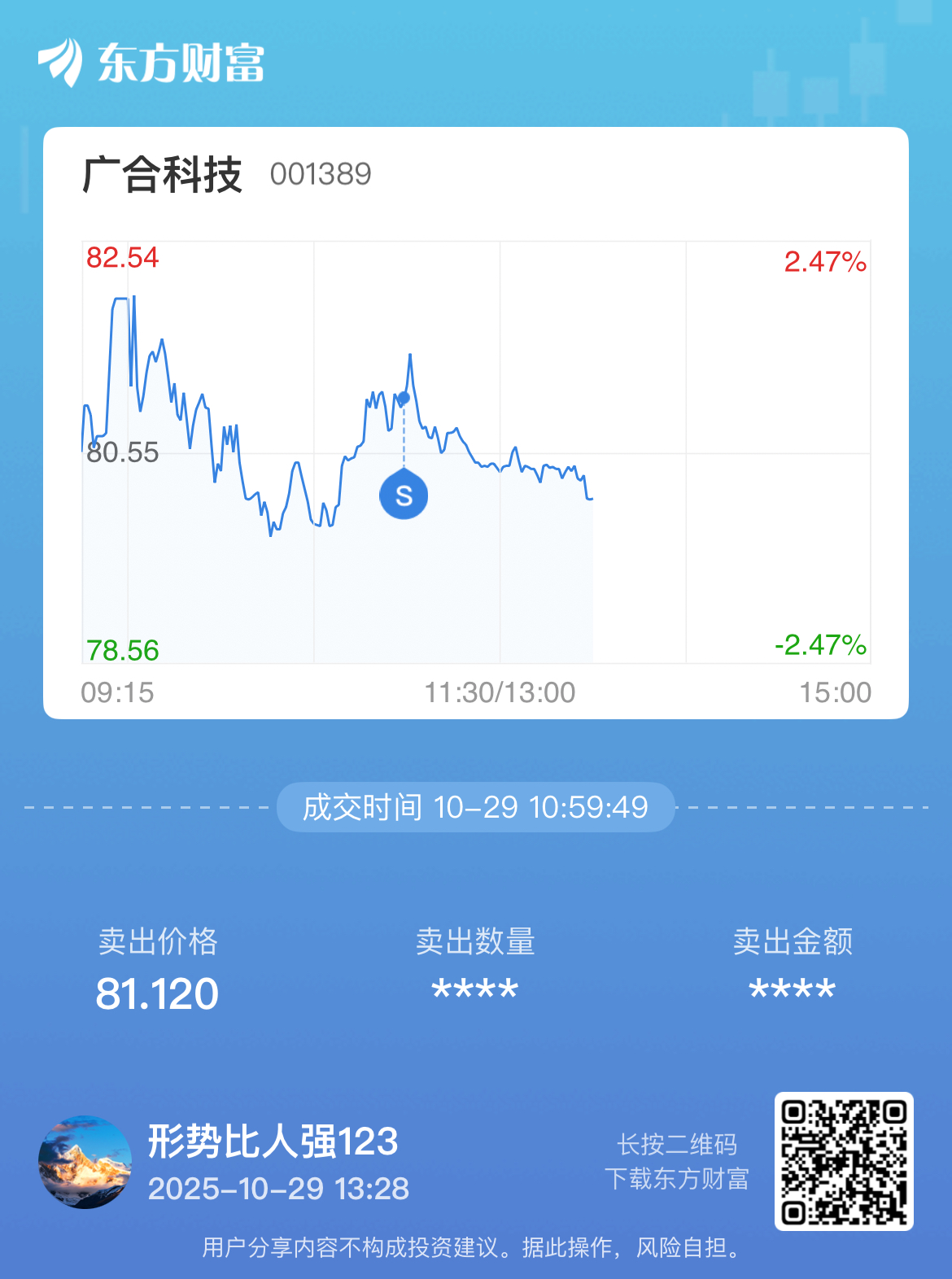 温馨提示: 1.根据《证券法》规定,禁止编造、传播虚假信息或者误导性信息,扰乱证券市场;2.用户在本社区发表的所有资料、言论等仅代表个人观点,与本网站立场无关,不对您构成任何投资建议。用户应基于自己的独立判断,自行决定证券投资并承担相应风险。《东方财富社区管理规定》