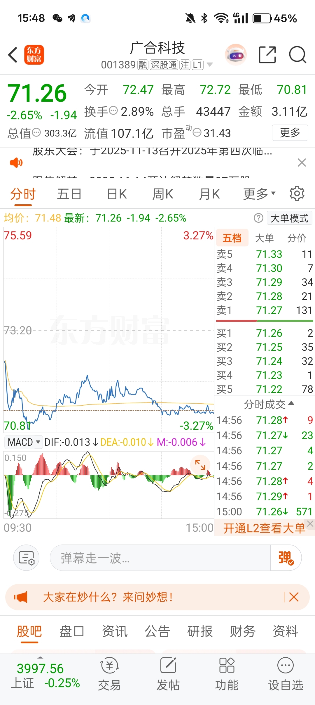 $广合科技(SZ001389)$ 卡着成本线,还能撑一天