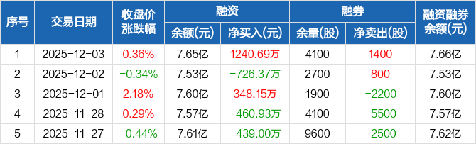 广合科技:融资净买入1240.69万元,融资余额7.65亿元(12-03)
