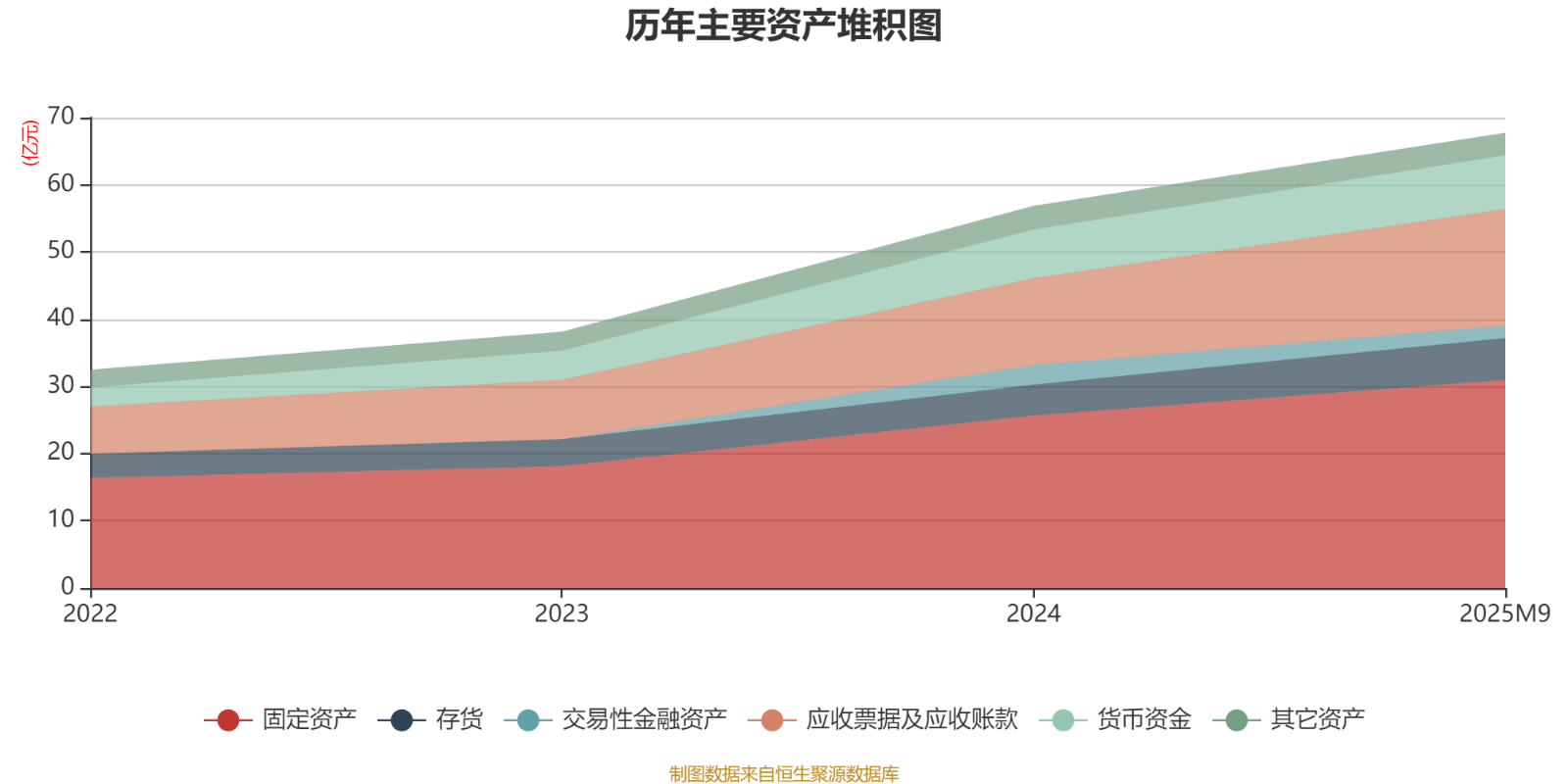 资产重大变化方面,截至2025年9月,公司应收票据及应收账款较上期末增加33.91%,占公司总资产比重上升2.83个百分点;交易性金融资产较上期末减少34.21%,占公司总资产比重下降2.29个百分点;存货较上期末增加35.48%,占公司总资产比重上升1.11个百分点;货币资金较上期末增加10.29%,占公司总资产比重下降0.94个百分点。