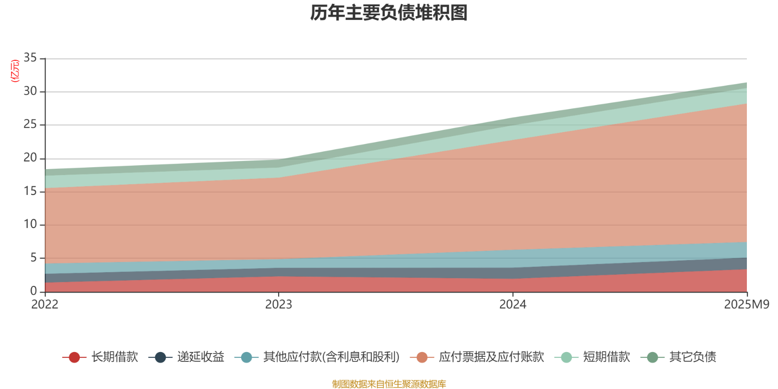 负债重大变化方面,截至2025年9月,公司应付票据及应付账款较上期末增加26.07%,占公司总资产比重上升1.69个百分点;长期借款较上期末增加73.48%,占公司总资产比重上升1.56个百分点;其他应付款(含利息和股利)较上期末减少11.87%,占公司总资产比重下降1.22个百分点;递延所得税负债较上期末减少46.82%,占公司总资产比重下降0.66个百分点。