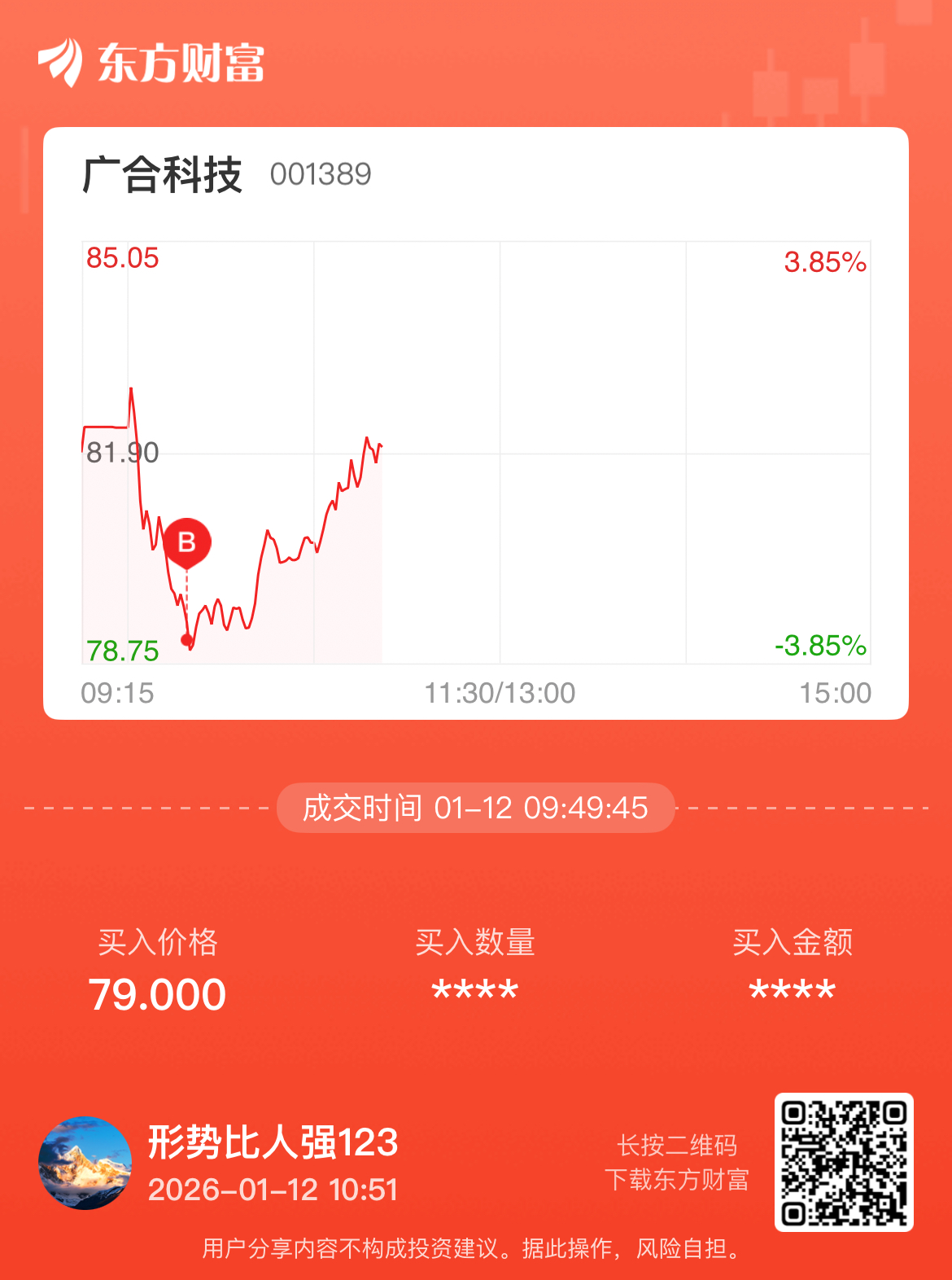 温馨提示: 1.根据《证券法》规定,禁止编造、传播虚假信息或者误导性信息,扰乱证券市场;2.用户在本社区发表的所有资料、言论等仅代表个人观点,与本网站立场无关,不对您构成任何投资建议。用户应基于自己的独立判断,自行决定证券投资并承担相应风险。《东方财富社区管理规定》