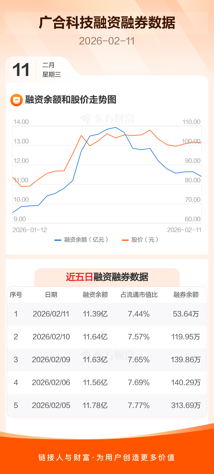 交易所最新数据显示,广合科技于2026年2月11日获融资买入3243.22万元,融资偿还5741.71万元,当日融资净偿还2498.49万元。目前,该股融资余额11.39亿,占流通市值比例为7.44%。