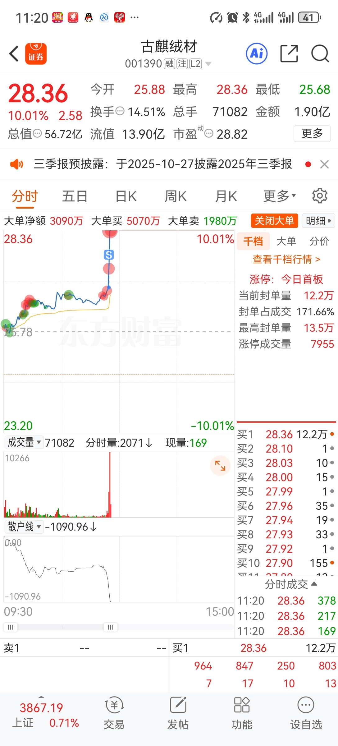 $古麒绒材(SZ001390)$ 哈哈,成功半仓卖飞
