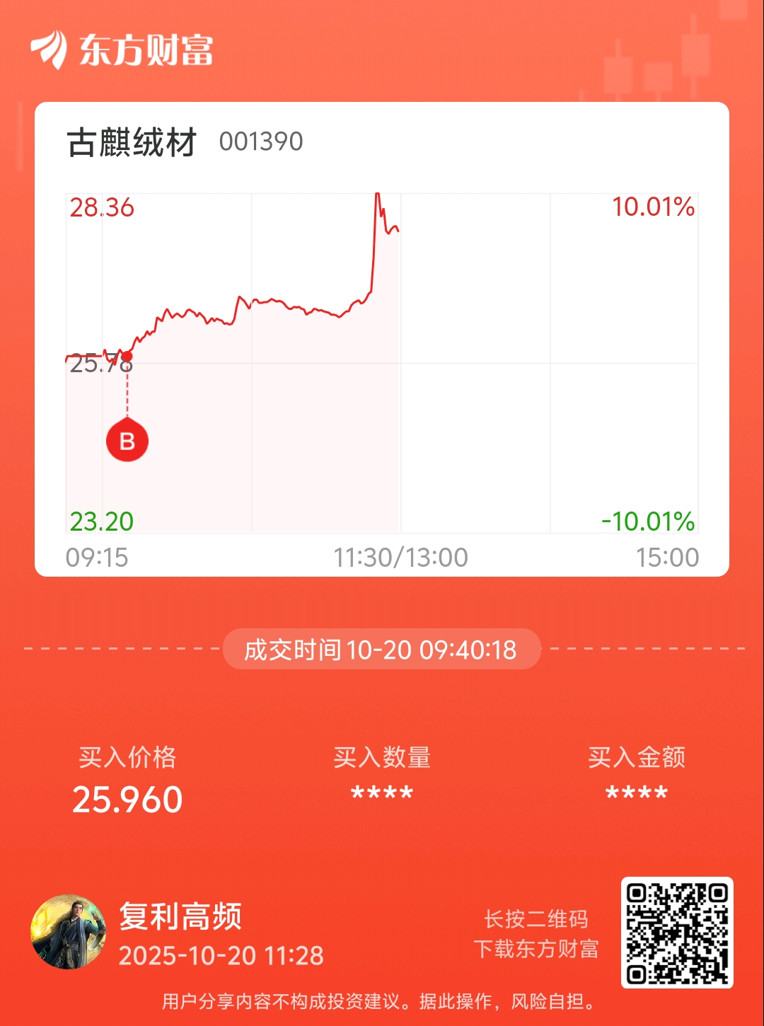 温馨提示: 1.根据《证券法》规定,禁止编造、传播虚假信息或者误导性信息,扰乱证券市场;2.用户在本社区发表的所有资料、言论等仅代表个人观点,与本网站立场无关,不对您构成任何投资建议。用户应基于自己的独立判断,自行决定证券投资并承担相应风险。《东方财富社区管理规定》
