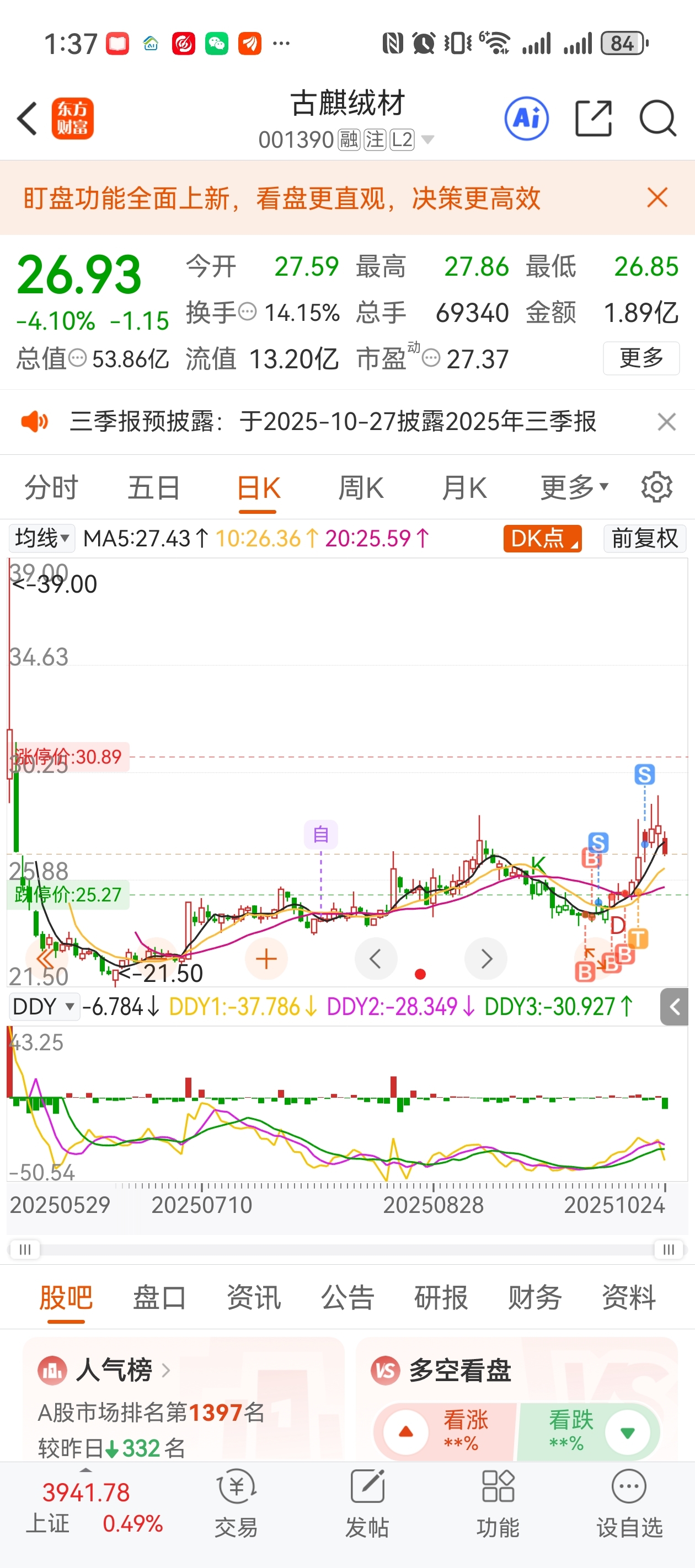 $古麒绒材(SZ001390)$ 前天昨天就发弹幕庄家拉高出货
