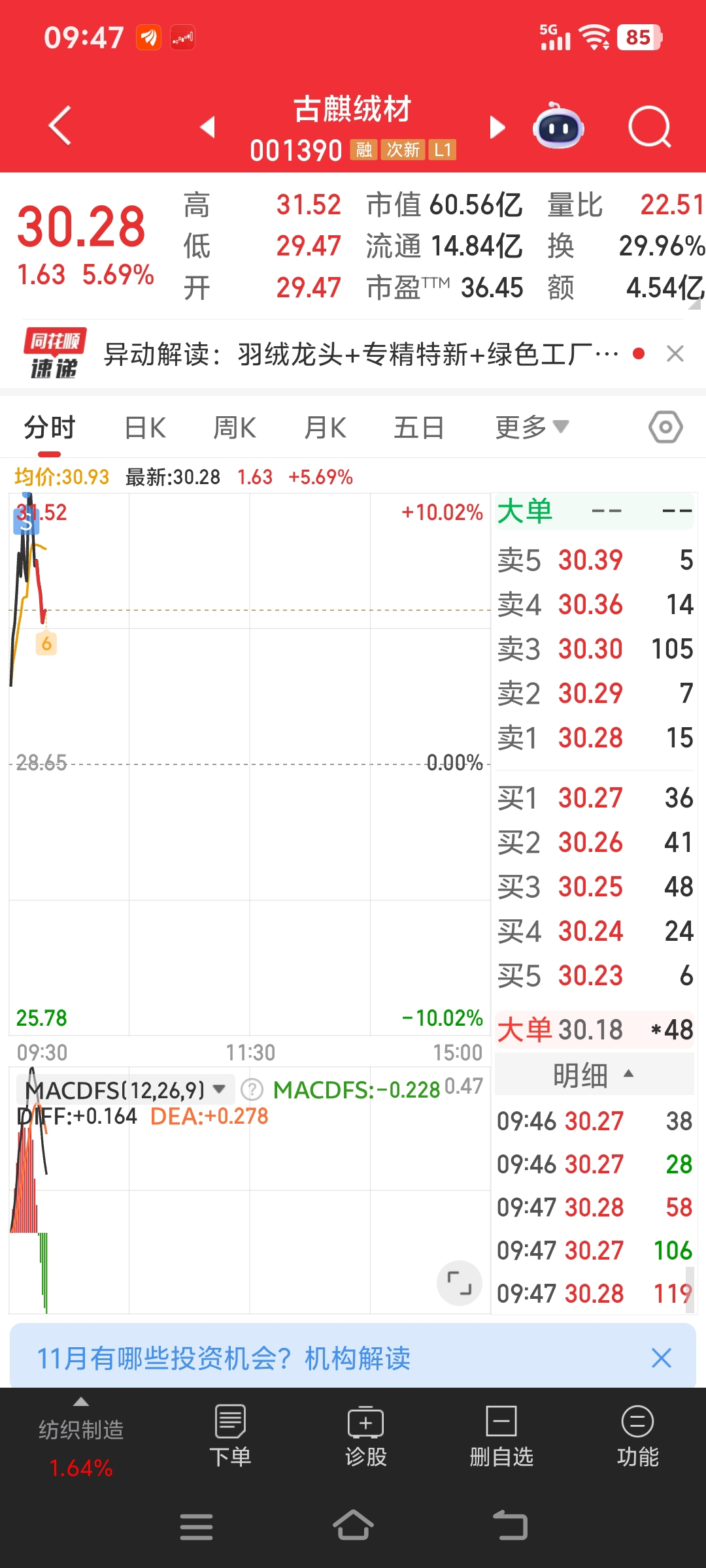 $古麒绒材(SZ001390)$ 不好意思,我砸的,就一手