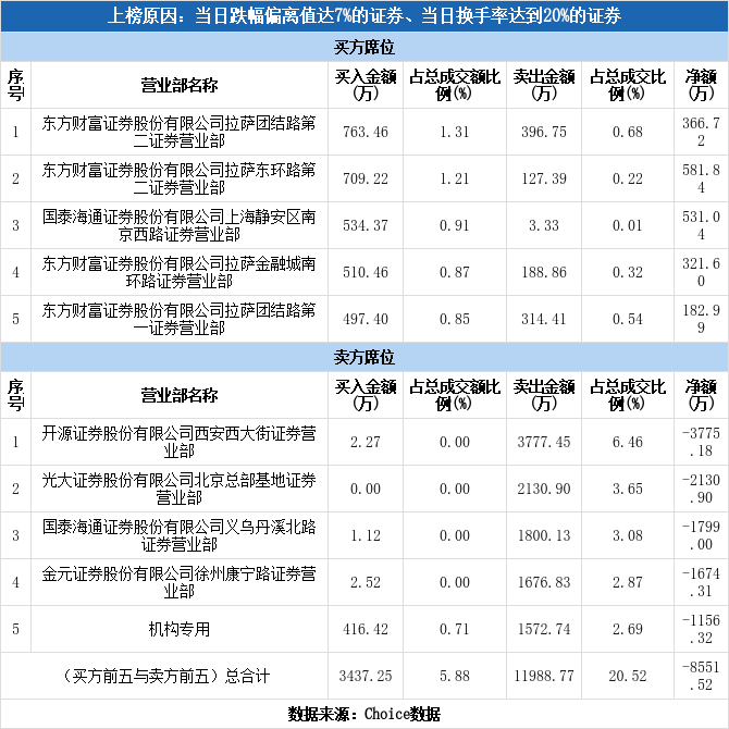深交所2025年11月17日交易公开信息显示,古麒绒材因属于当日跌幅偏离值达7%的证券、当日换手率达到20%的证券而登上龙虎榜。古麒绒材当日报收27.52元,涨跌幅为-9.62%,偏离值达-9.63%,换手率42.58%,振幅7.00%,成交额5.84亿元。
