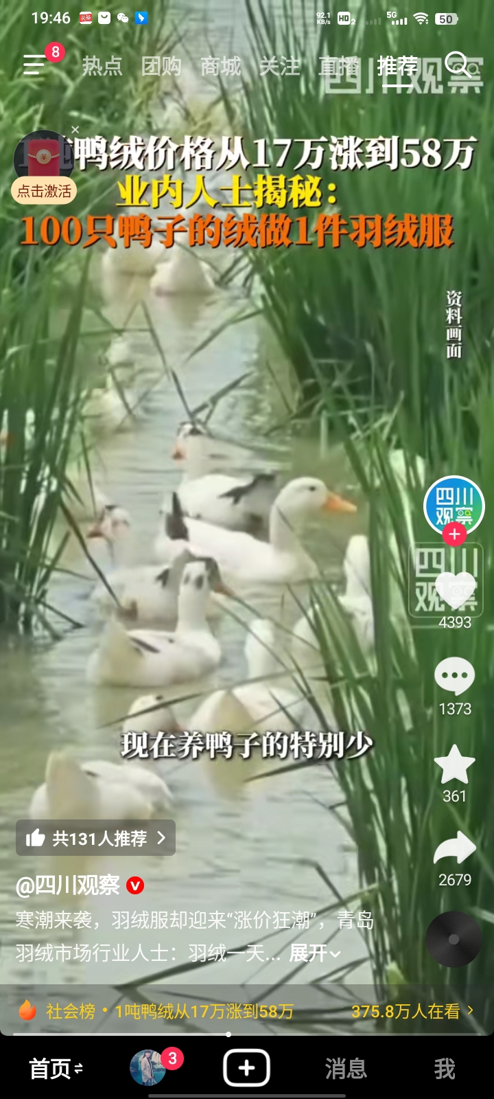 $古麒绒材(SZ001390)$ 鸭毛将面临一根难求