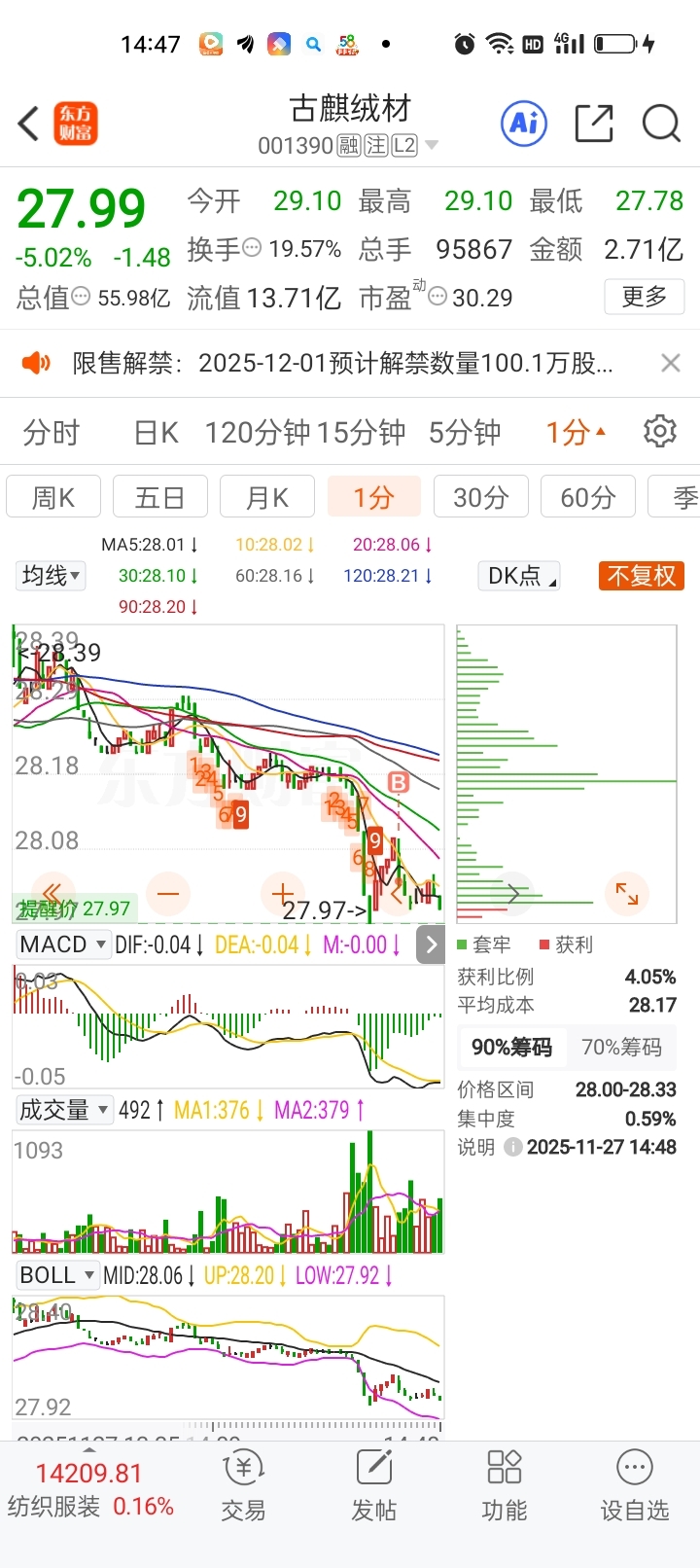 $古麒绒材(SZ001390)$ 因为想信破32.98,所以今天买了