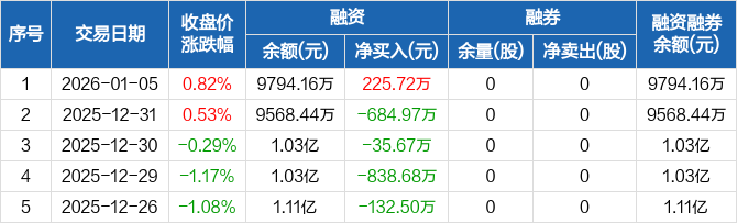 古麒绒材:融资净买入225.72万元,融资余额9794.16万元(01-05)