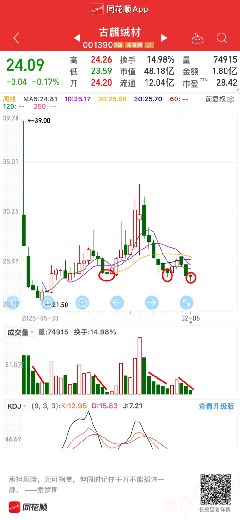 $古麒绒材(SZ001390)$ 怎么看都是缩量到极致了,按理要反弹才对