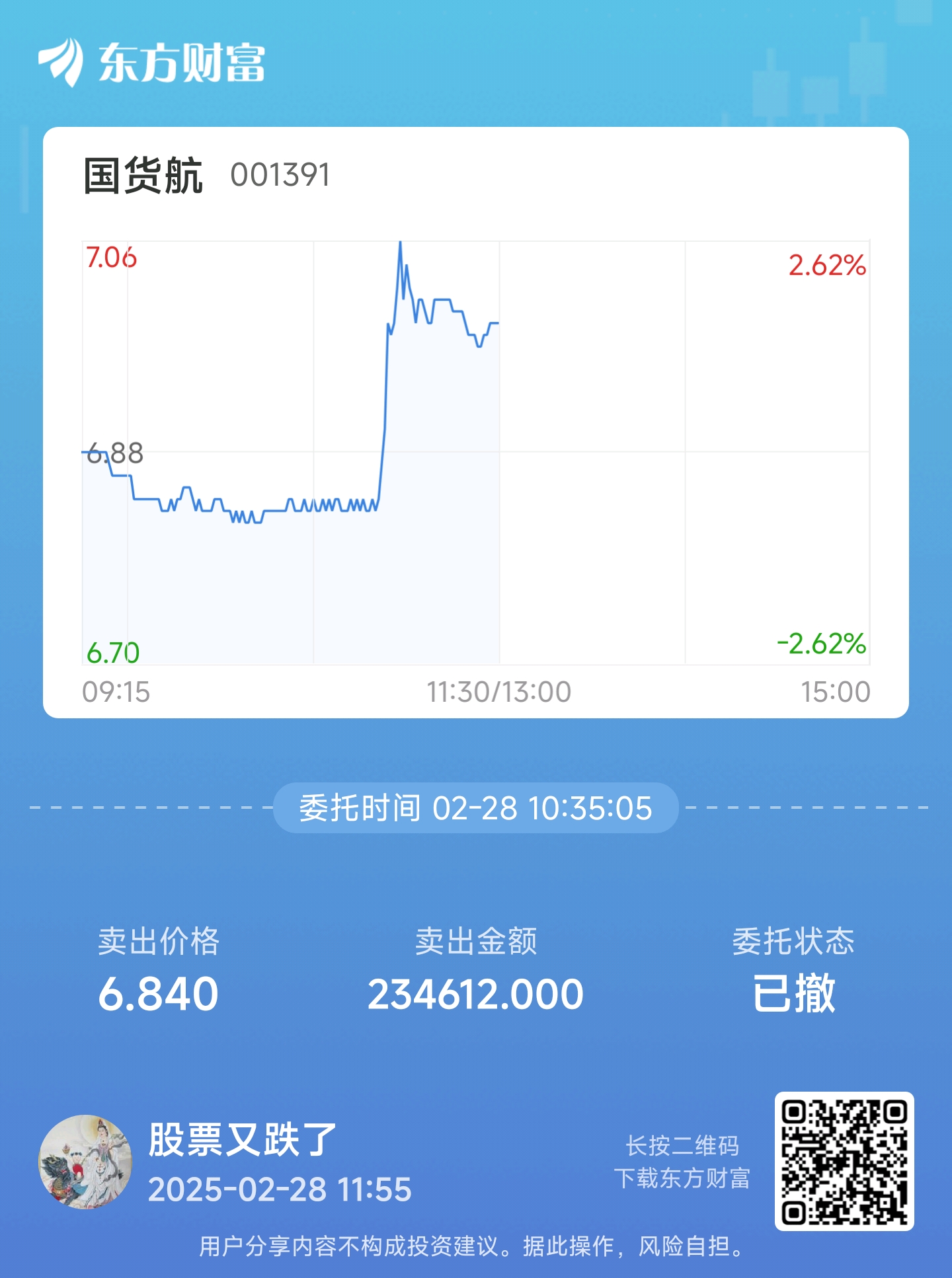 温馨提示: 1.根据《证券法》规定,禁止编造、传播虚假信息或者误导性信息,扰乱证券市场;2.用户在本社区发表的所有资料、言论等仅代表个人观点,与本网站立场无关,不对您构成任何投资建议。用户应基于自己的独立判断,自行决定证券投资并承担相应风险。《东方财富社区管理规定》