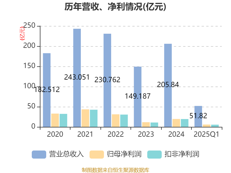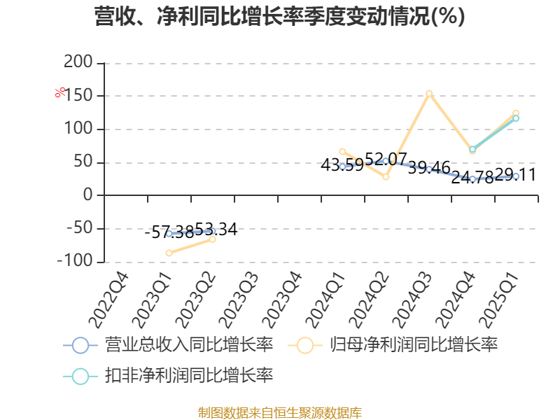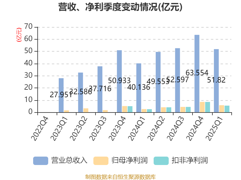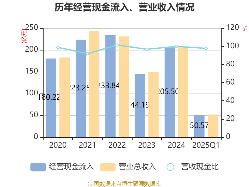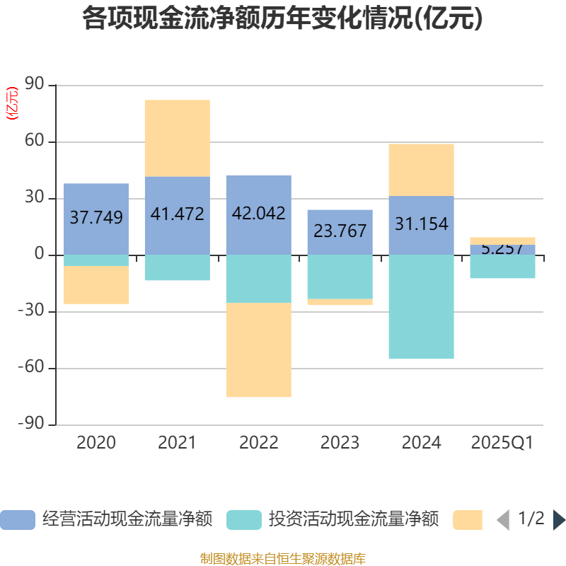截至2025年一季度末,公司经营活动现金流净额为5.26亿元,同比下降12.59%;筹资活动现金流净额3.94亿元,同比增加5.2亿元;投资活动现金流净额-12.49亿元,上年同期为-2.02亿元。