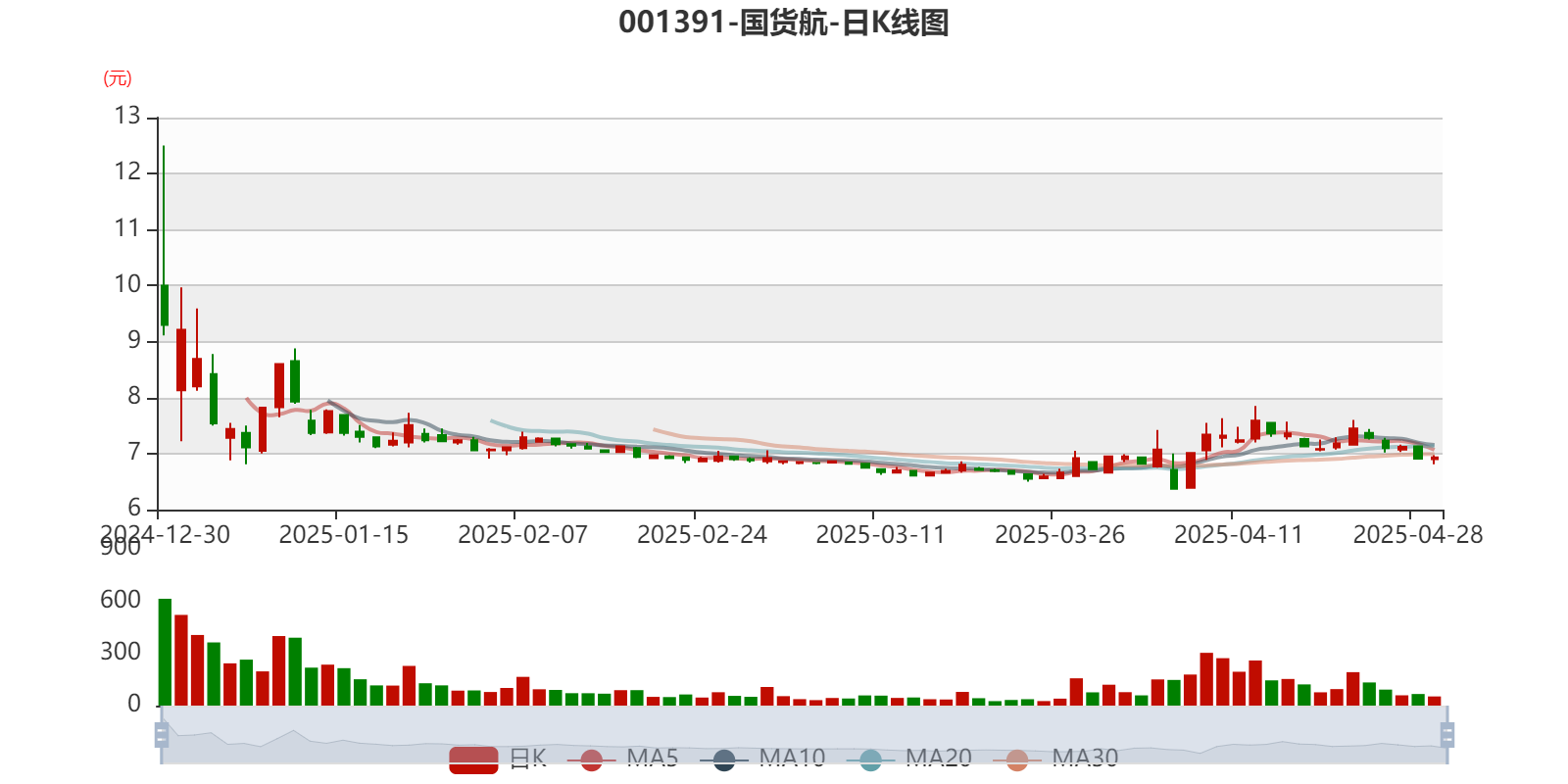 中证智能财讯国货航(001391)4月29日披露2025年第一季度报告。公司实现营业总收入51.82亿元,同比增长29.11%;归母净利润5.79亿元,同比增长124.27%;扣非净利润5.42亿元,同比增长116.59%;经营活动产生的现金流量净额为5.26亿元,同比下降12.59%;报告期内,国货航基本每股收益为0.05元,加权平均净资产收益率为2.30%。