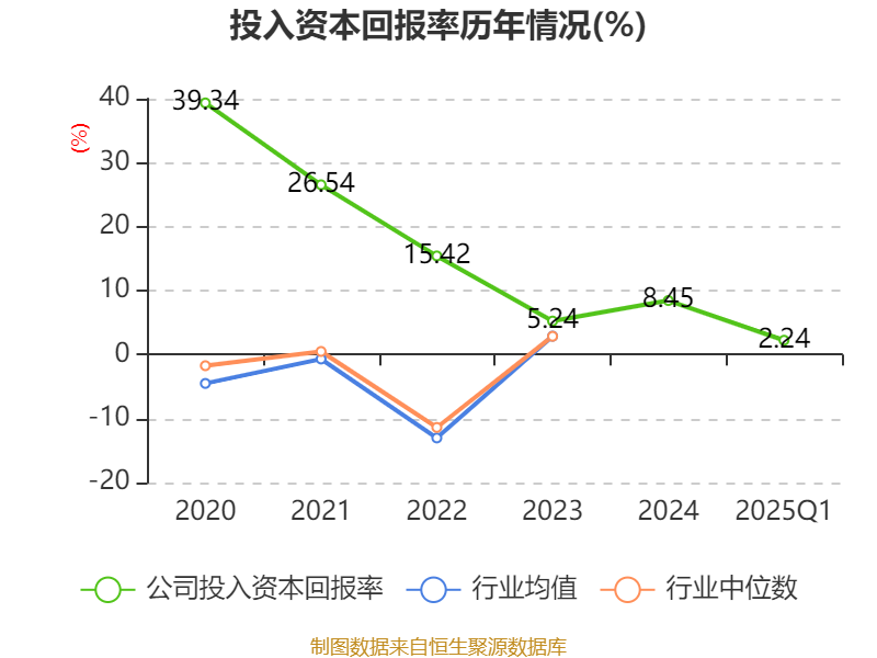 盈利能力方面, 2025年一季度公司加权平均净资产收益率为2.3%,同比上升1个百分点。公司2025年第一季度投入资本回报率为2.24%,较上年同期下降0.12个百分点。