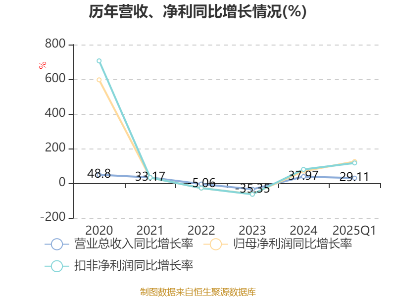 资产重大变化方面,截至2025年一季度末,公司固定资产较上年末增加11.91%,占公司总资产比重上升3.54个百分点;在建工程合计较上年末减少10.62%,占公司总资产比重下降2.43个百分点;货币资金较上年末减少5.44%,占公司总资产比重下降1.86个百分点;应收票据及应收账款较上年末增加8.52%,占公司总资产比重上升0.5个百分点。