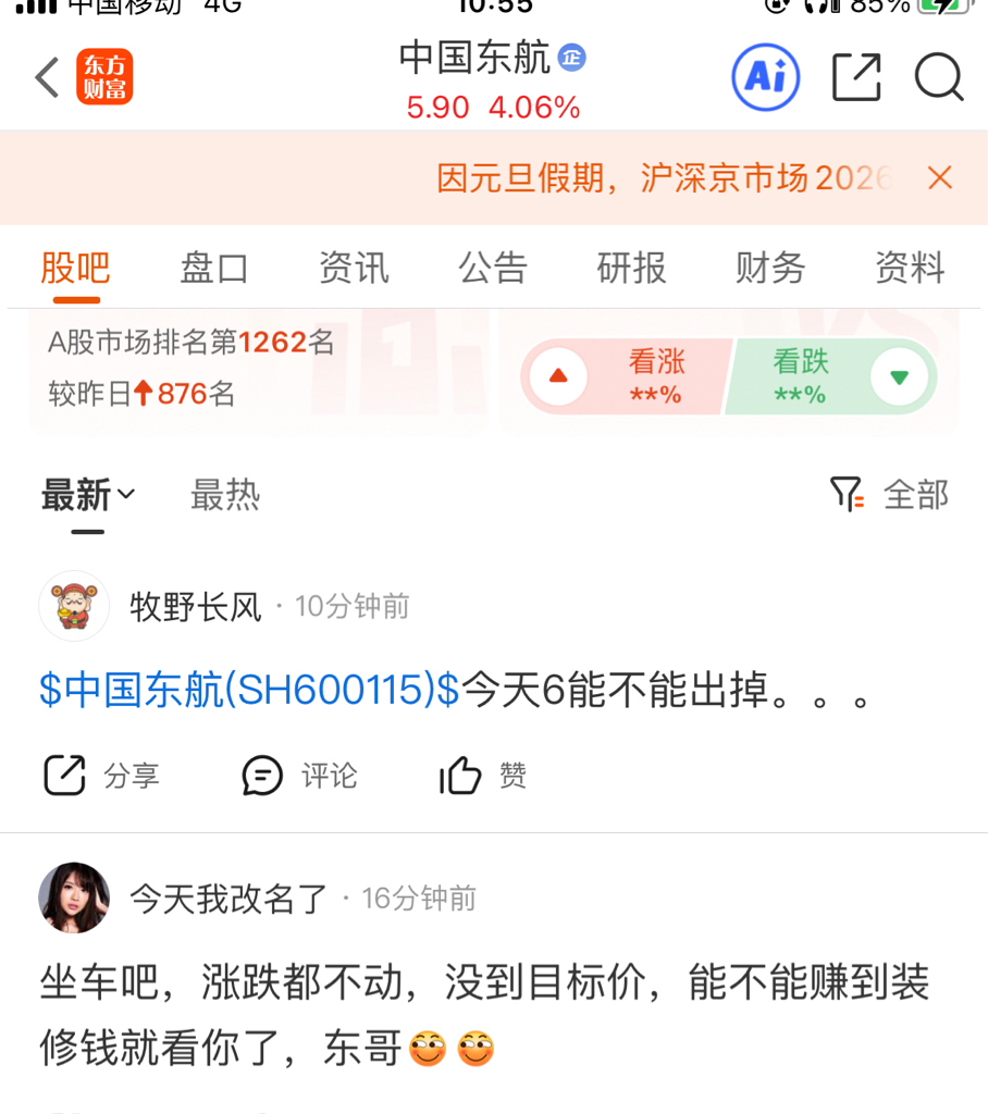 温馨提示: 1.根据《证券法》规定,禁止编造、传播虚假信息或者误导性信息,扰乱证券市场;2.用户在本社区发表的所有资料、言论等仅代表个人观点,与本网站立场无关,不对您构成任何投资建议。用户应基于自己的独立判断,自行决定证券投资并承担相应风险。《东方财富社区管理规定》