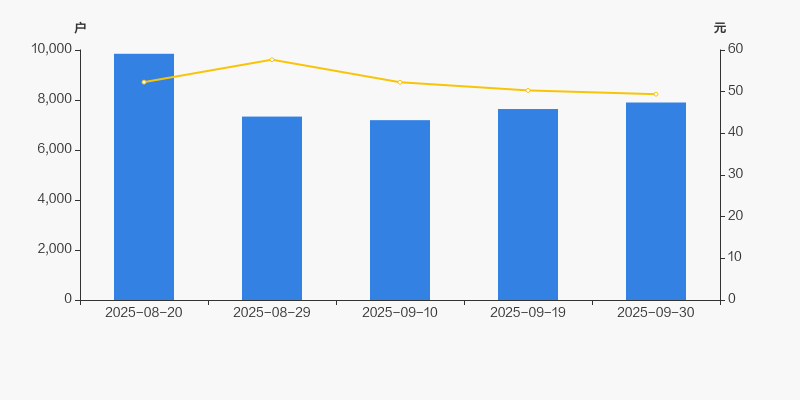 2025年8月20日至今,公司股东户数显著下降,区间跌幅为19.79%。2025年8月20日至2025年9月30日区间股价下降5.55%。