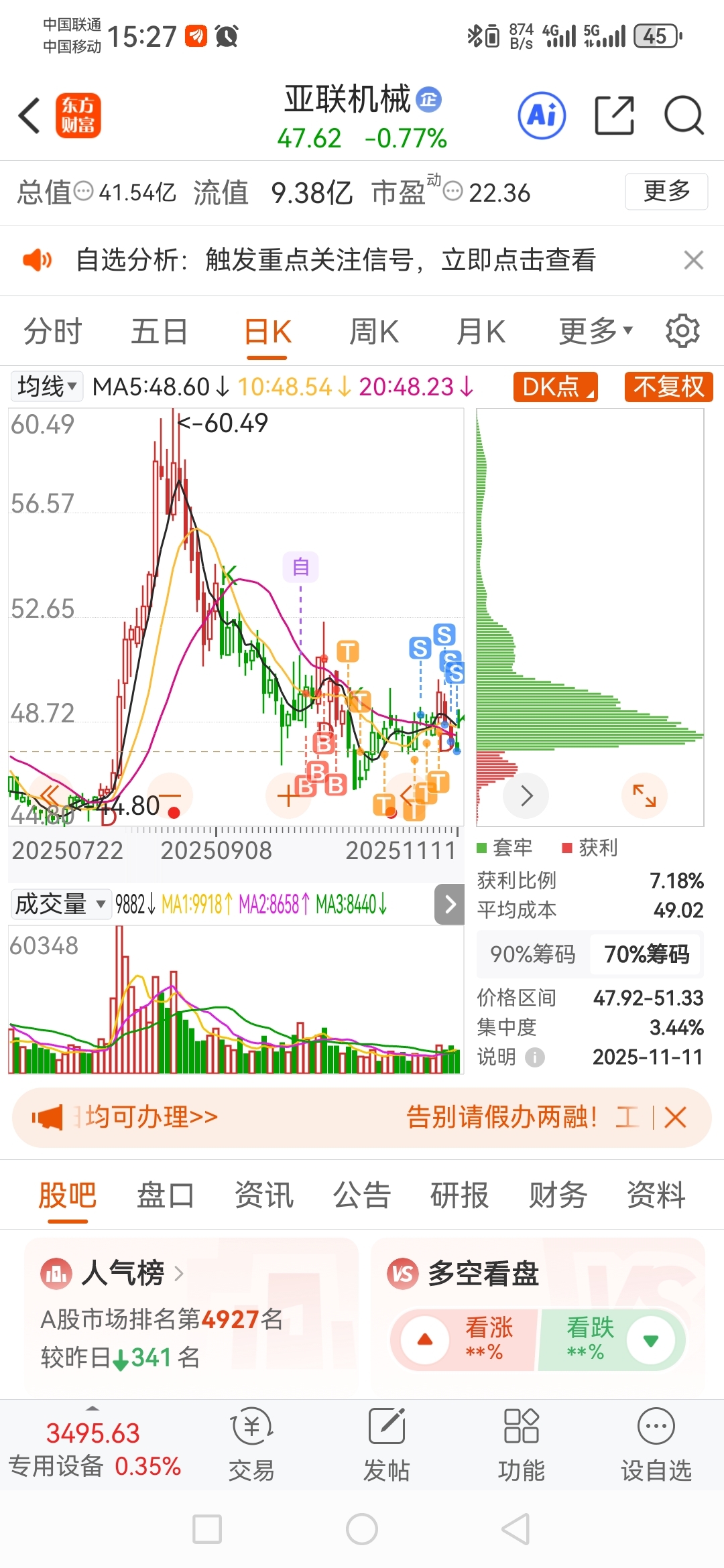 $亚联机械(SZ001395)$ $亚联机械(SZ001395)$ 呆了一个多月*反复做t*最终亏了2个多点*走了*受不了了*折磨人*
