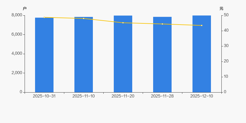 截至2025年12月10日,公司最新总股本为8724万股,其中流通股本为1968.74万股。户均持有流通股数量为2465股,较上期略有下降;户均流通市值10.71万元。