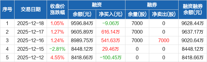 亚联机械:融资净偿还9.06万元,融资余额9596.84万元(12-18)