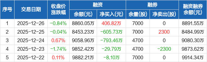 亚联机械:融资净买入406.82万元,融资余额8860.05万元(12-26)