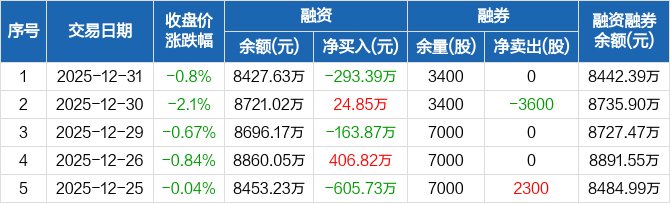 亚联机械:融资净偿还293.39万元,融资余额8427.63万元(12-31)