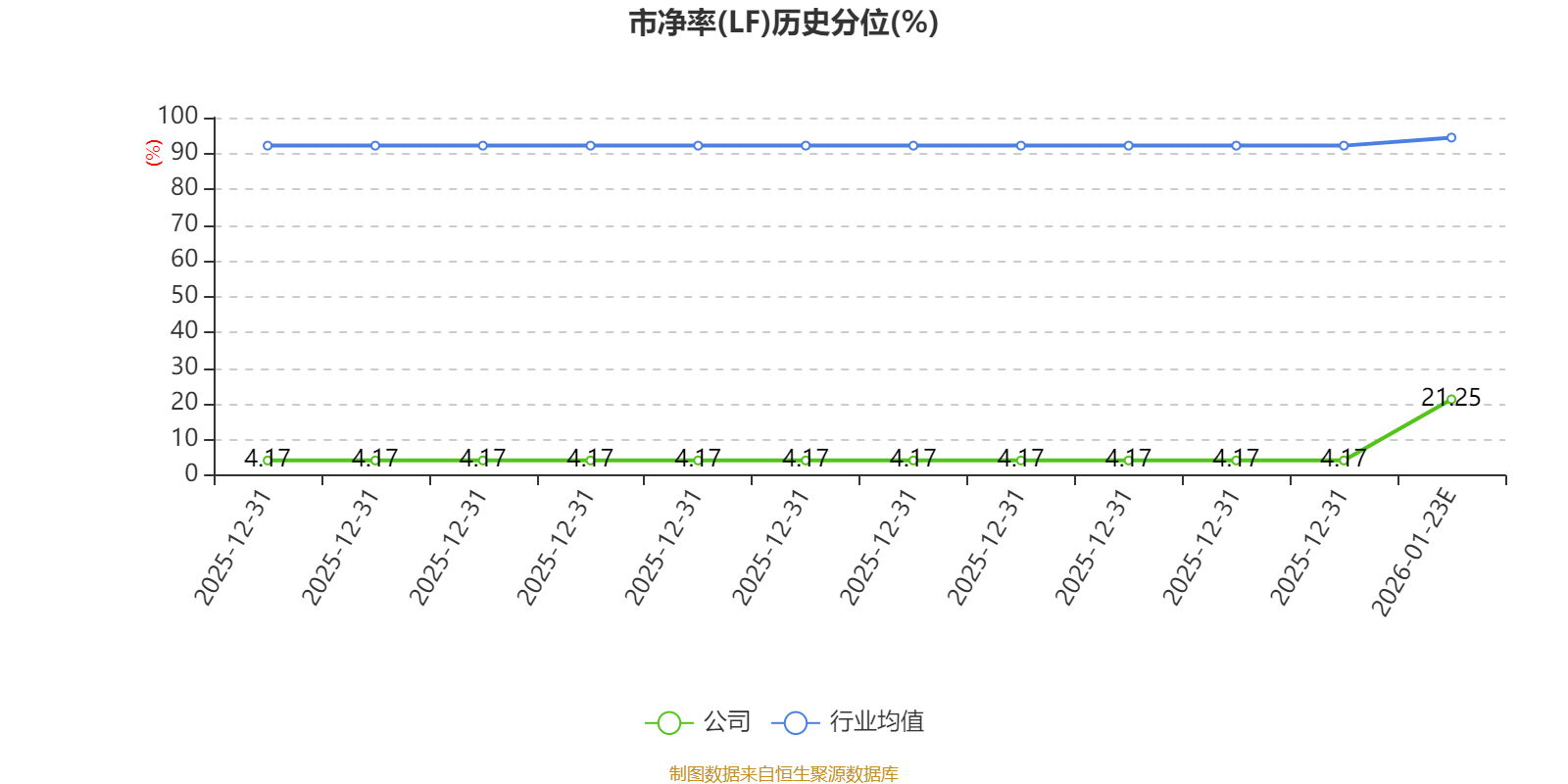 市盈率、市净率为负时,不显示当期分位数,会导致折线图中断。