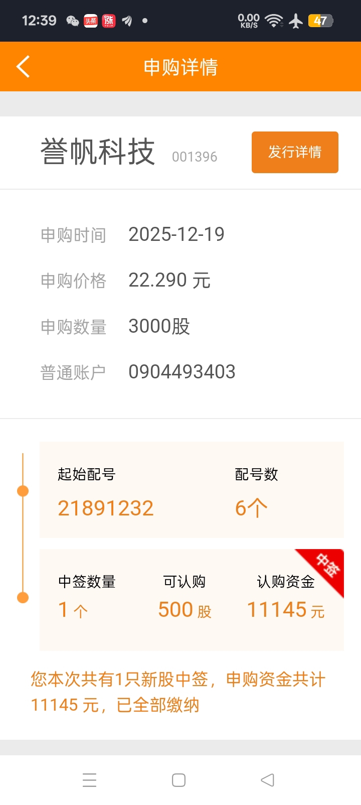 $誉帆科技(SZ001396)$ 请问这样就可以了吧,第一次中签!