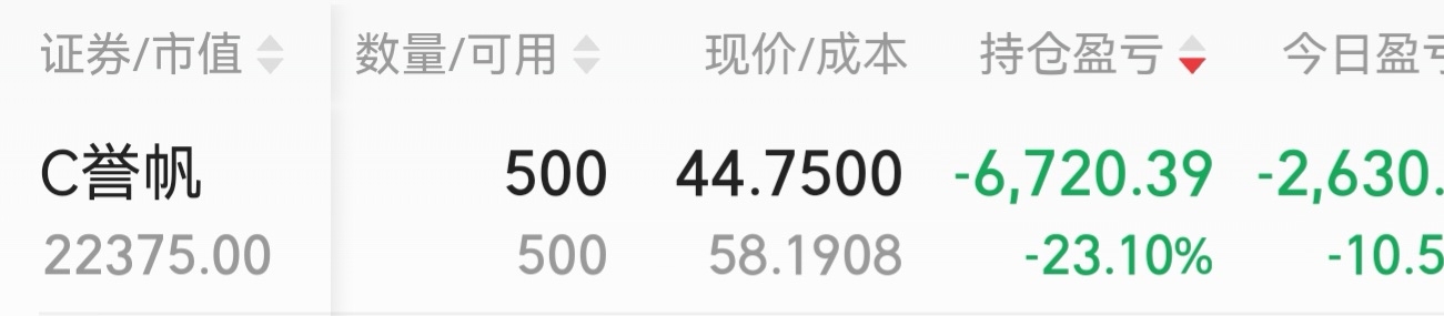 $C誉帆(SZ001396)$ 有谁比我亏得多?